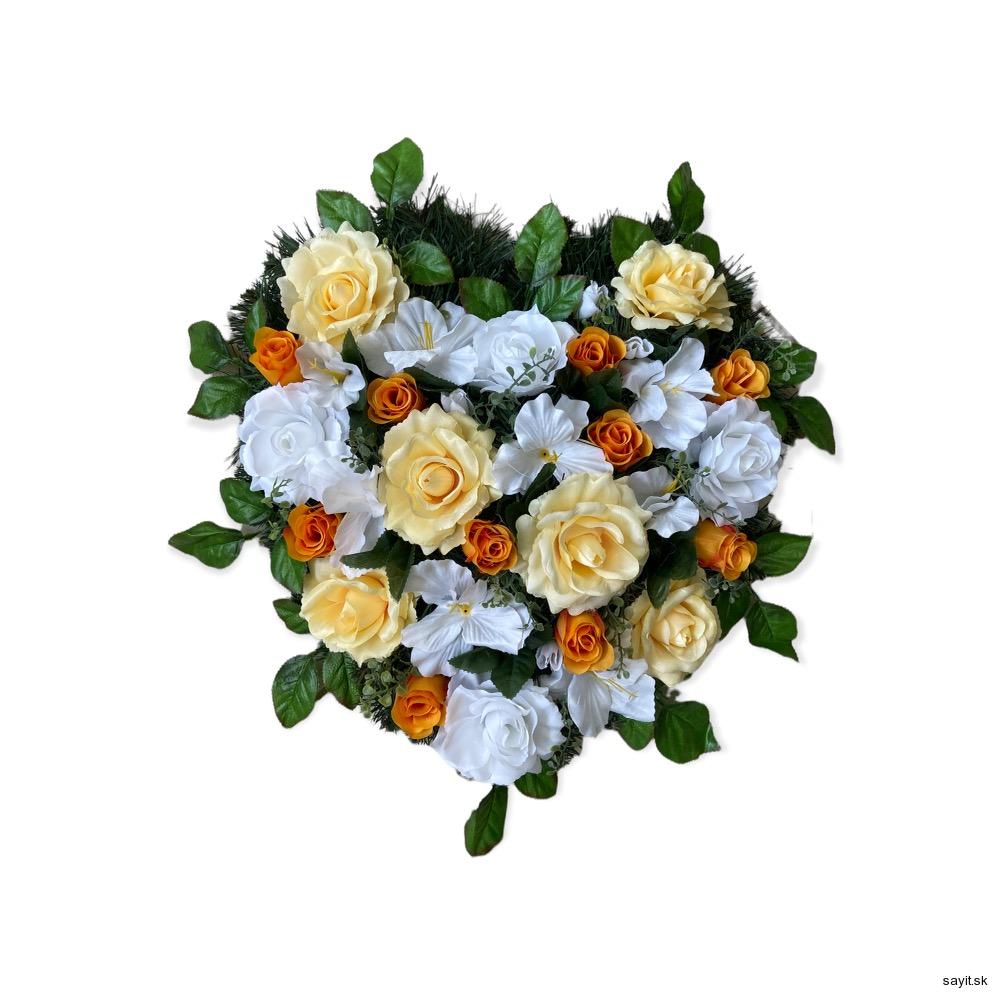 Umelý smútočný veniec srdce s priemerom 50cm. Do poznámky je potrebné uviesť text na stuhu.